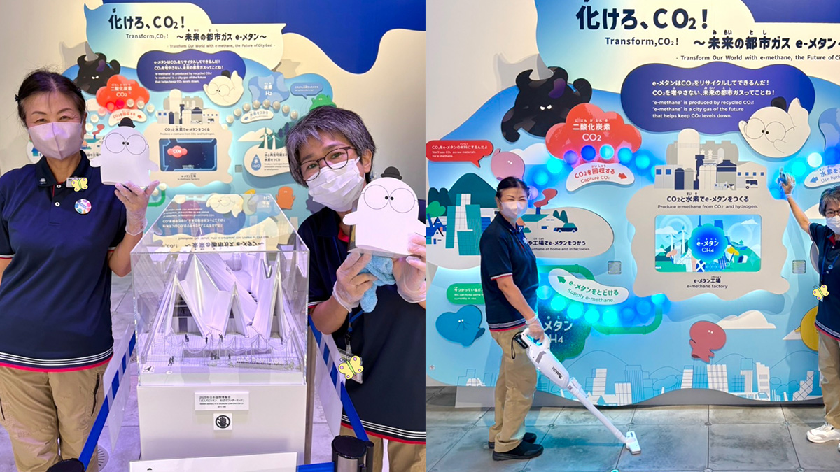 2025.10.02 職場紹介・採用情報 【大阪・関西万博】ガスパビリオン・おばけワンダーランドの現場より 先日もご紹介しました、「ガスパビリオン・おばけワンダーランド」は、当社が清掃を担当させていただいています。 今回は、そこで働く清掃クルーの写真をいくつかご紹介します。 館内のキャラクターと一緒に撮影した、ちょっと遊び心のある写真。 そして、来場者のいない時間帯に実施している、夜間清掃の様子。 日々の業務の合間に、撮影に快く協力してくれたクルーたちに感謝を込めて。 現場で働く仲間の姿を、少しだけお届けします。 関連の記事 【さようなら、万博2025!】さようならのその先で。投稿担当Nが感じたこと。 2025.11.24 職場紹介・採用情報 【大阪・関西万博】ミッチーと一緒に、おつかれさまでした《スタッフIさんより》 2025.10.20 職場紹介・採用情報 【大阪・関西万博】184日間、支え続けた“私たちの誇り” 2025.10.19 職場紹介・採用情報 全ての記事一覧に戻る