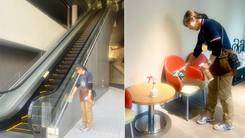 明るく、コツコツと作業に取り組むMさんは、新しく完成したA棟の清掃をはじめ、日々の業務に丁寧に向き合っています。